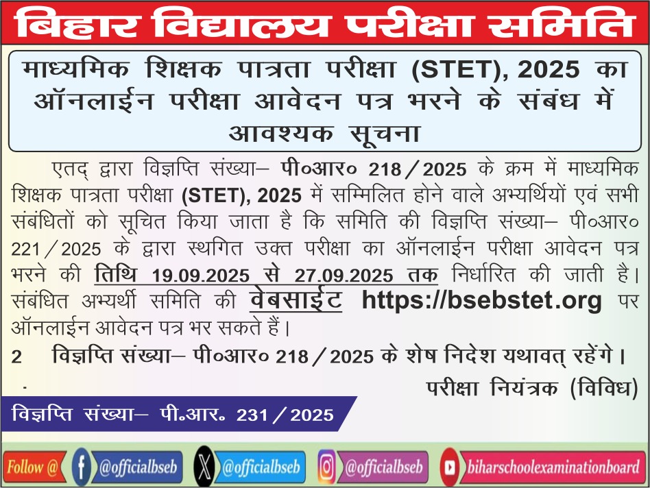 - For all the interested and eligible candidates who want to apply for Bihar STET recruitment can read all the information related to the recruitment is given below and the link to apply is given in the Important Link section below.