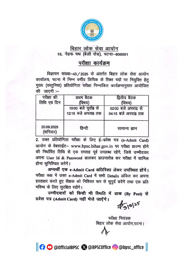 Q. What is Last Date of BPSC Lower Division Clerk LDC Notification 2025?